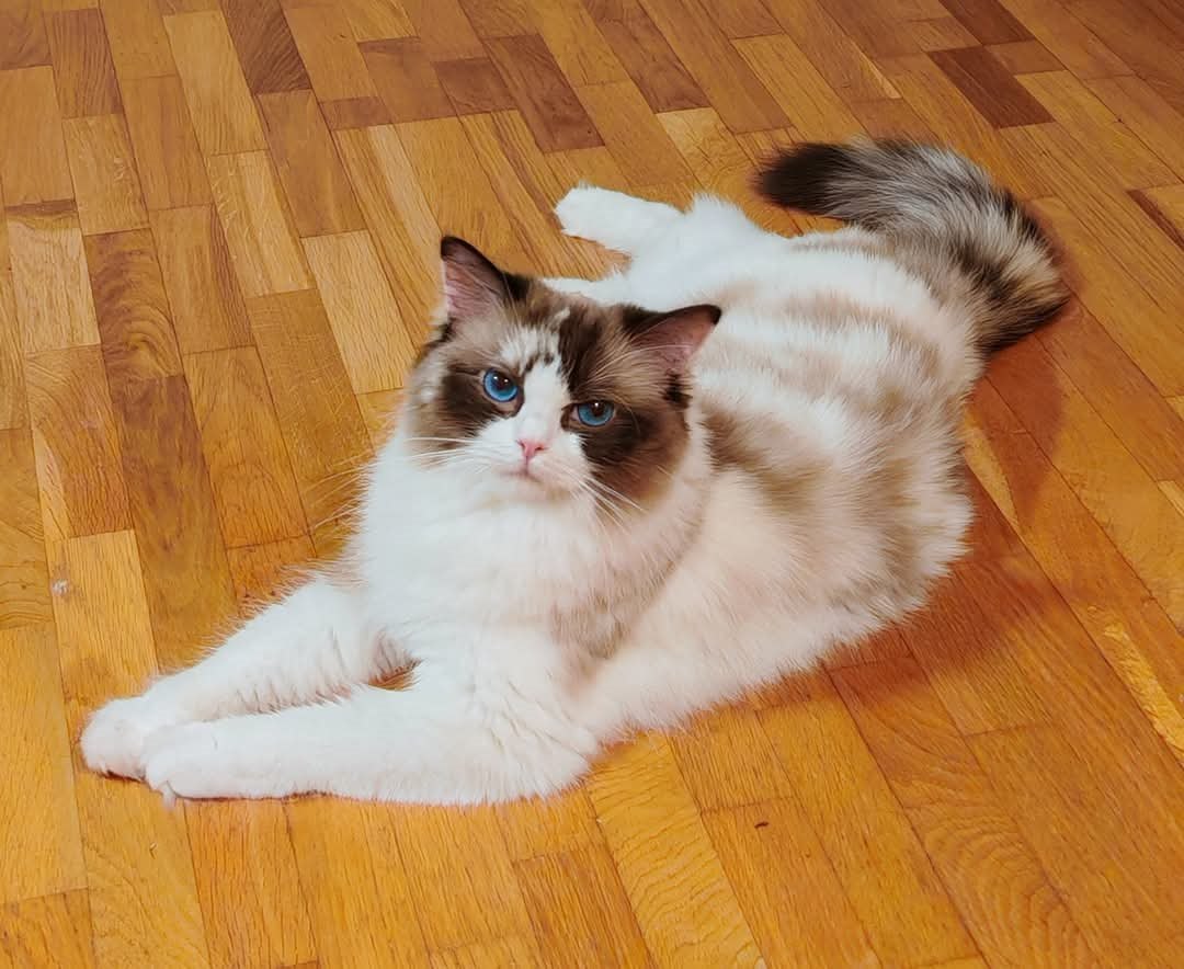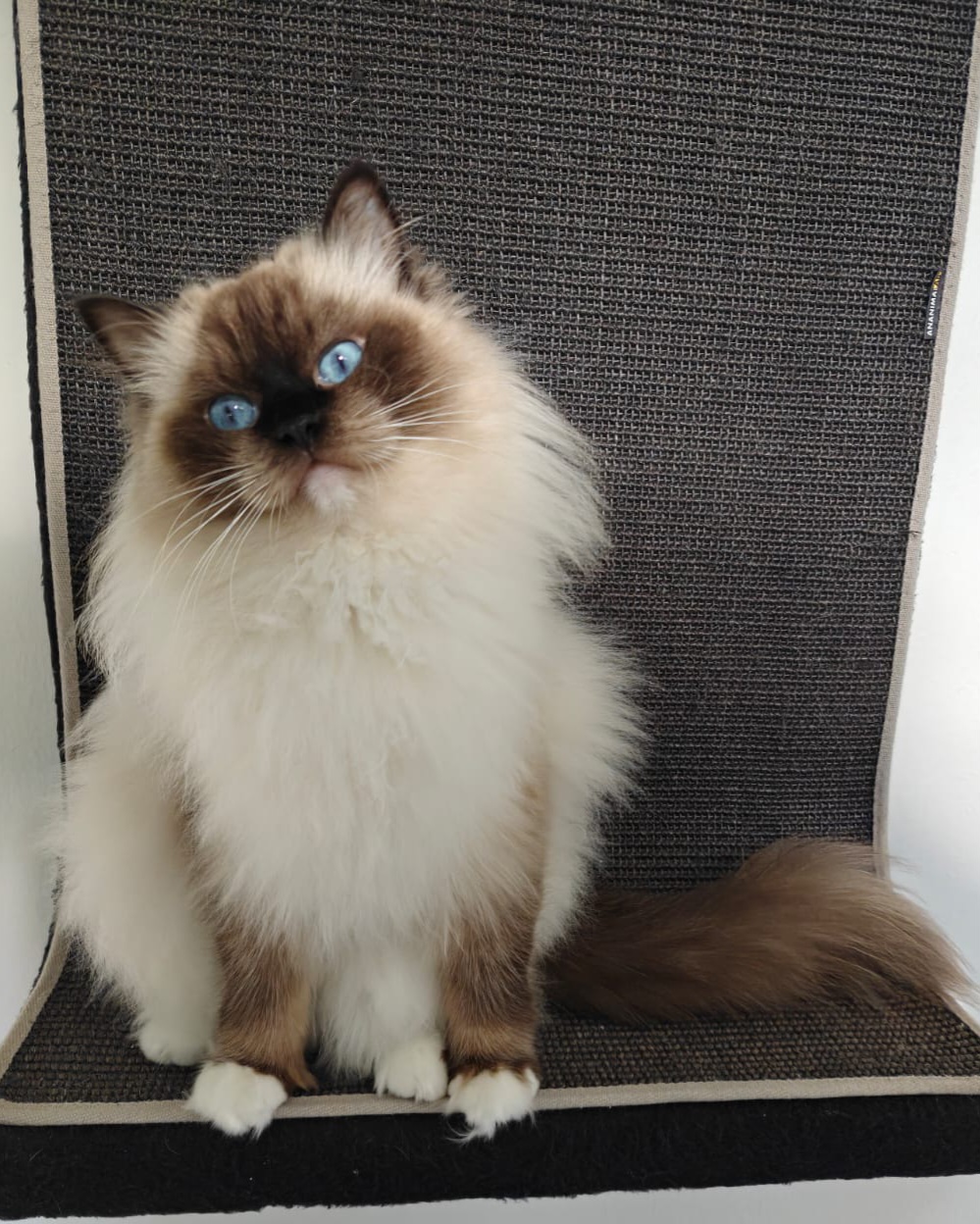 Loru is super cute tortie without any tortie attidude. She is strong boned but very femine and well balanced almost 2 year old female with lovely pedigree. She is 4th generation Dollicious with 5 imported ragdolls behind her. Her coat quality is super silky and she has very well balanced gead shape and dark blue eye color. She is waiting her first litter with Bailey.